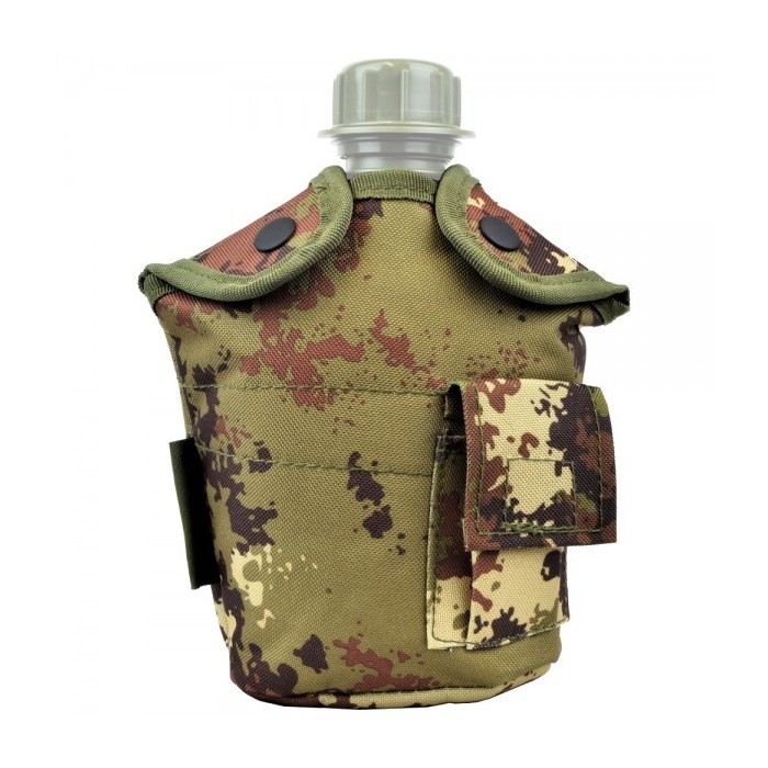 La tasca porta borraccia JS-Tactical è l'accessorio ideale per caccia, softair e outdoor. Realizzata in poliestere con imbottitura, chiusura a clip e mini tasca frontale. Compatibile con il sistema M.O.L.L.E. e disponibile in vari colori (Verde, Multicam, Vegetato, Woodland).