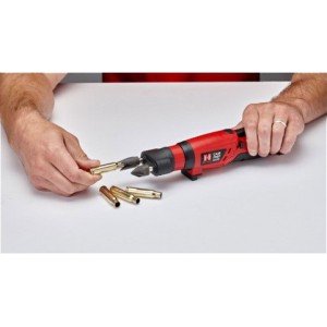 Per eseguire velocemente più lavoretti di ricarica, è possibile utilizzare questo utensile multifunzione senza filo, che può montare scovoli per il colletto dei bossoli, fresette per pulire la sede innesco, sbavatori e cianfrinatori. Grazie al corpo ruotabile con facilità e al piedino gommato incorporato, è possibile utilizzarlo in configurazione dritta sul banco di lavoro, o ruotarlo di 180 gradi per disporre di un ergonomico utensile da tenere in mano. Si usa con la testa a mandrino da 8-32 per più funzioni oppure si può rimuovere la testa a mandrino e utilizzarlo come un cacciavite motorizzato per bit esagonali da ¼ di pollice (non inclusi). Inclusi nella confezione: - Svasatore - Sbavatore - Caricabatterie Europeo.