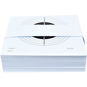 Set di 100 bersagli di cartoncino con uno sfondo bianco e dimensioni di 14x14 cm ciascuno. Questi bersagli sono utilizzati per il tiro al bersaglio con armi da fuoco o con frecce. Il cartoncino è spesso abbastanza da resistere ai danni causati dal proiettile o dalla freccia, ma abbastanza leggero da essere facilmente trasportato. Il design bianco dello sfondo consente al tiratore di visualizzare facilmente il punto di impatto e di valutare la propria precisione.