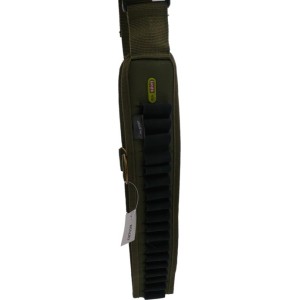 Realizzata in cordura resistente, questa cartuccera verde Made in Italy offre 30 celle elastiche per cartucce calibro 20, mantenendole ordinate e facilmente accessibili. Con una lunghezza di 20 cm, è ideale da fissare alla cintura o al calcio del fucile, garantendo rapidità di ricarica.