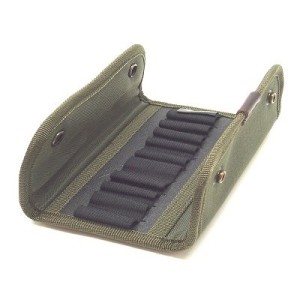 Cartuccera in cordura Rip-Stop verde, dotata di 17 celle elastiche per cartucce di carabina e una tasca esterna con cerniera per accessori. Leggera e robusta, si aggancia alla cintura o al calcio dell’arma con passanti integrati, garantendo munizioni e attrezzi sempre a portata di mano.