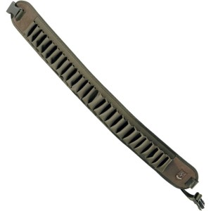 Realizzata in cordura resistente, questa cartuccera verde Made in Italy offre 30 celle elastiche per cartucce calibro 20, mantenendole ordinate e facilmente accessibili. Con una lunghezza di 20 cm, è ideale da fissare alla cintura o al calcio del fucile, garantendo rapidità di ricarica.