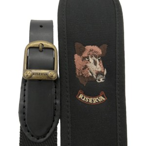 La tracolla Riserva è realizzata in pelle effetto carbonio nera, pensata per il trasporto comodo e sicuro della carabina. Dispone di due celle portacolpi multicalibro integrate, retro in neoprene antiscivolo per stabilità e inserti in pelle con fibbie metalliche per una regolazione precisa.