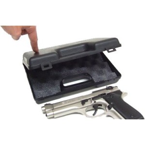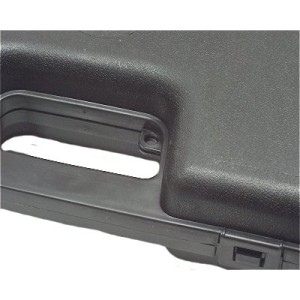 Valigetta porta pistola in plastica economica. Dimensioni interne: lunghezza cm 15,5, larghezza cm 23,5 e altezza esterna cm 5,5. Prodotto in Italia.