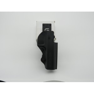 Grazie alla piastra realizzata in alluminio ultraleggero, è possibile regolare la fondina in ogni angolazione. La fondina è realizzata in tecnopolimero antiurto, termoformata per ogni tipo di arma con regolazione di ritenzione.