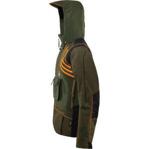 La giacca icona della nostra linea 2000 CONFORTECH, ideata per i cacciatori con cane da seguita che non temono gli ambienti più difficili, si evolve nella sua versione 3.0. Dedicata all’abbinamento con il pantalone PANTHER PRO 3.0, GLADIATOR 3.0 riprende i materiali base del pantalone con il corpo in CORDURA® e i rinforzi in SCHOELLER® KEPROTEC su maniche e fianchi. Un nuovo generoso inserto in KETRATEX stretch nella zona delle scapole agevola l’imbracciata, conferendo maggior elasticità senza inficiare la robustezza. Anche gli inserti in SUPERTEK su spalle, gomiti e fianchi sono volti al rinforzo delle zone più esposte all’usura durante l’avanzamento. Una zip permette la regolazione del soffietto laterale espandibile per aumentare o diminuire il volume del capo, ideale quanto indossiamo una cartucciera o quando il carniere è a pieno carico. I numerosi dettagli tecnici come le due tasche porta palmare/radio frontali, il carniere posteriore a doppio scomparto, le due tasche laterali e le due tasche al fondo con porta colpi incorporato, vi daranno la sensazione di avere sempre tutto a portata di mano. A impermeabilizzare il tutto ci pensa la membrana RAINSYSTEM lavorata a liner interno al capo.
