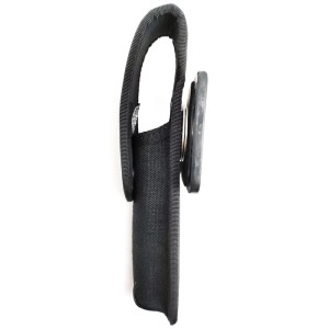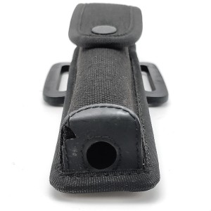 Porta bastone retrattile chiuso in cordura nera professionale con foro progettato per garantire un trasporto sicuro bastone, ideale per operatori delle forze dell'ordine.