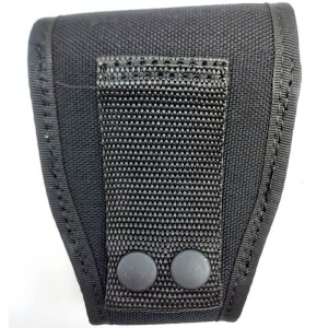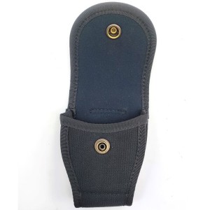Porta manette in cordura nera professionale progettato per garantire un trasporto sicuro e silenzioso delle manette, ideale per operatori delle forze dell'ordine.
