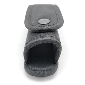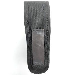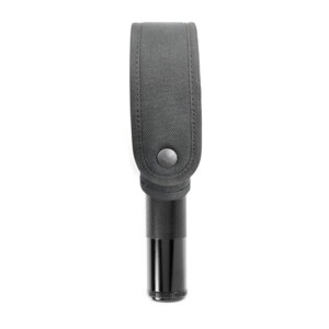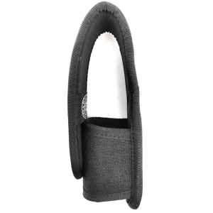 Porta torcia aperto in cordura nera professionale progettato per garantire un trasporto sicuro della torcia C/Cell, ideale per operatori delle forze dell'ordine, sicurezza privata e softair.
