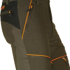 Pantaloni Zotta Forest Carson in resistente tessuto misto cotone e nylon, con trattamento idrorepellente. Dotati di tasche con zip: due in vita, una posteriore e una sulla gamba sinistra. Comfort e funzionalità per chi cerca praticità durante l’attività all’aperto.