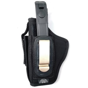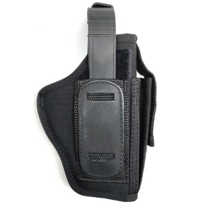 La fondina King Cobra HCF Compact è realizzata in cordura sintetica imbottita, ideale per pistole compatte come Glock 19 e Taurus G3. Con clip rigida in metallo, fascia in gomma tattica e porta caricatore laterale, offre comfort, sicurezza e stabilità. Perfetta per forze dell'ordine e di sicurezza.