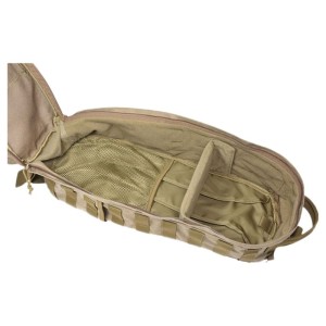 L'interno è molto funzionale e contiene, tra le altre cose: grande elastico tasca in rete, zip tasca in rete, scomparto separato per l'idratazione vescica con tubo flessibile, il lato anteriore è una tasca organizer con zip con spazio per i più piccoli elementi di equipaggiamento e Molle-loop sul coperchio anteriore e un'altra tasca con velcro al di fuori e CERNIERA SU TRE LATI. Maniglia per il trasporto robusta sopra e sotto, nonché numerose anse laterali minori.